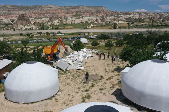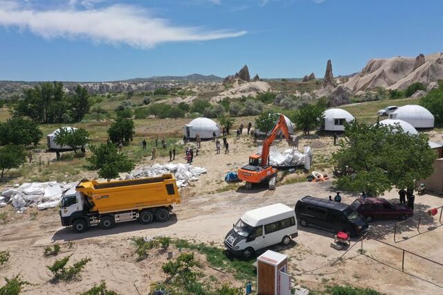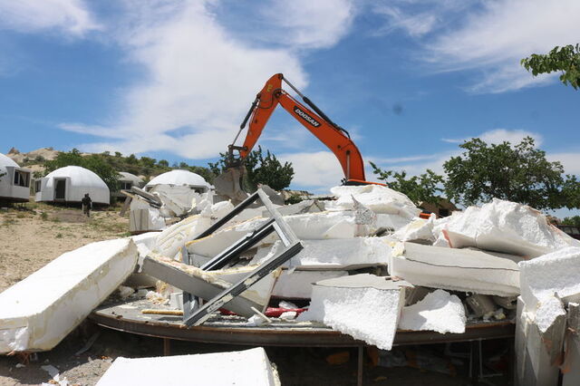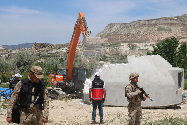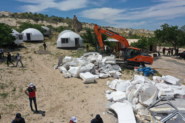 DHA'da yer alan habere göre Uçhisar, Göreme, Ortahisar ve Ürgüp'te konaklama amaçlı inşa edilen 11 iglo ev ile 2 betonarme kaçak yapı yıkıldı.