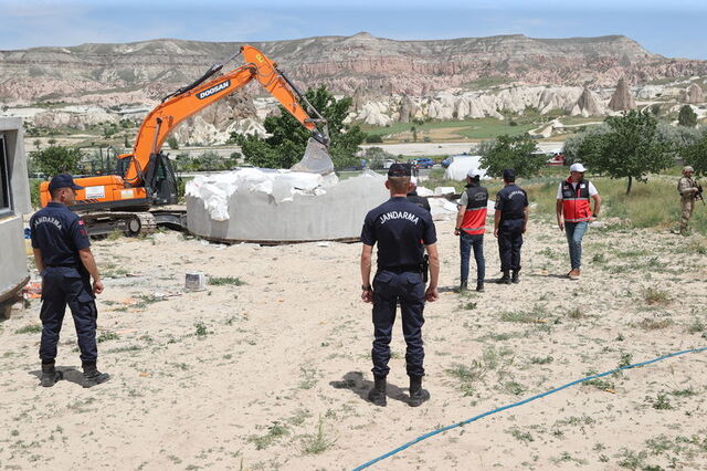 UNESCO Dünya Kültür Miras Listesi'ndeki Kapadokya'nın kültürel ve doğal mirasını korumak için çalışmalarını sürdüren Kapadokya Alan Başkanlığı, kaçak yapıldığı belirlenen betonarme ve iglo evlerin yıkımını sürdürüyor.