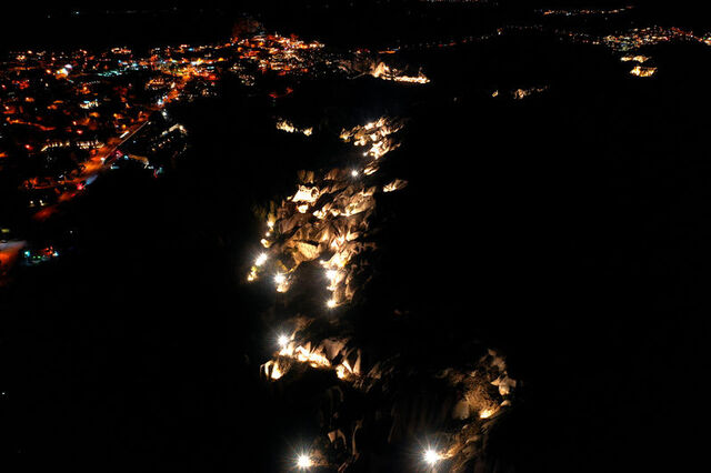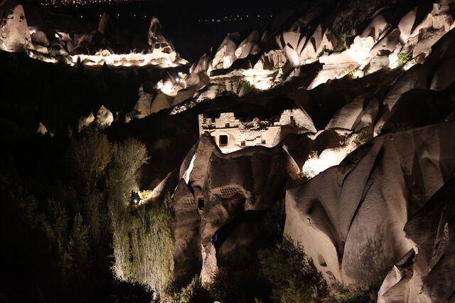 Kapadokya'nın peribacalarıyla kaplı vadisi Güvercinlik gece de turist çekecek