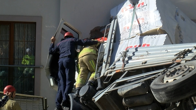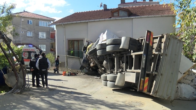 Hastaneye kaldırılan şoförün hayati tehlikesinin olmadığı öğrenilirken kamyonun çarptığı odada kimsenin olmaması ise olası bir faciayı önledi.