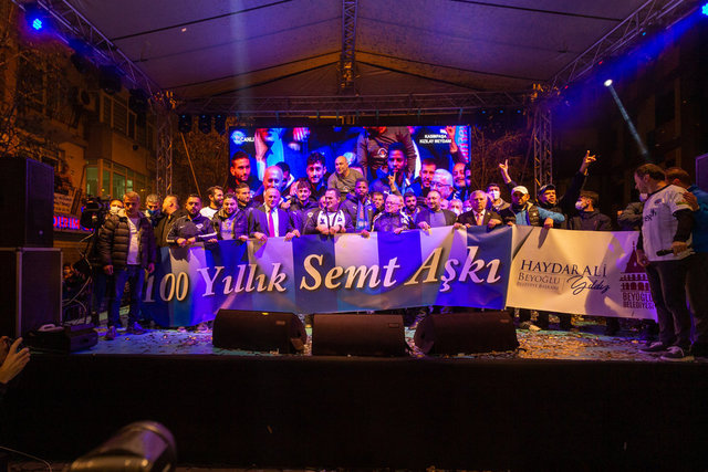 Türkiye'nin sayılı spor kulüpleri arasında yer alan ve futboldan güreşe birçok branşta faaliyetlerini sürdüren Beyoğlu'nun güzide kulübünün kutlamaları Kasımpaşa Kızılay Meydanı'nda gerçekleştirildi.