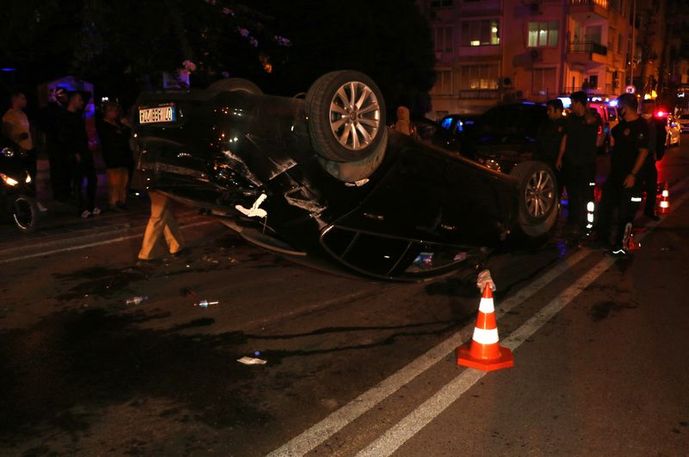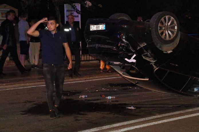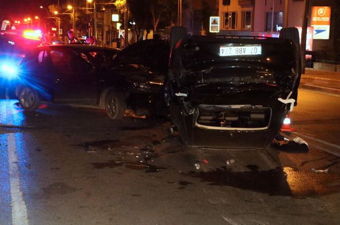 Çarpışmanın etkisiyle Ersin Ç. önce yol üzerinde bulunan trafik direğine sonra da Cumhuriyet Meydanı'ndan Konyaaltı Caddesi istikametine seyir halinde olan Leyla Ö. idaresindeki otomobile çarptıktan sonra takla attı.