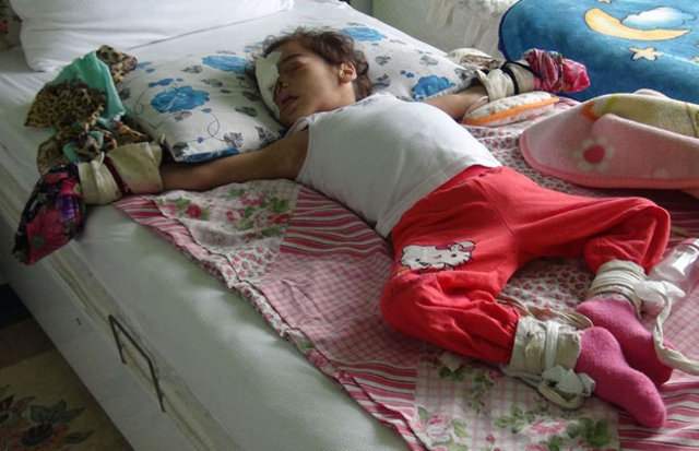Minik Selen, halen ailesi tarafından yatağa bez parçalarıyla bağlı tutuluyor. Elleri çözüldüğünde ise yüzü ve vücuduna zarar veriyor. Baba Mehmet Özenç, yatağa bağlı yaşayan küçük kızı için çare bulunmasını istedi.