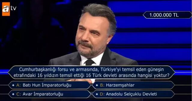 Kim Milyoner Olmak İster'de 1 Milyon değerindeki soru açıldı! Cumhurbaşkanlığı forsunda bulunan 16 Türk devlet hangileridir?