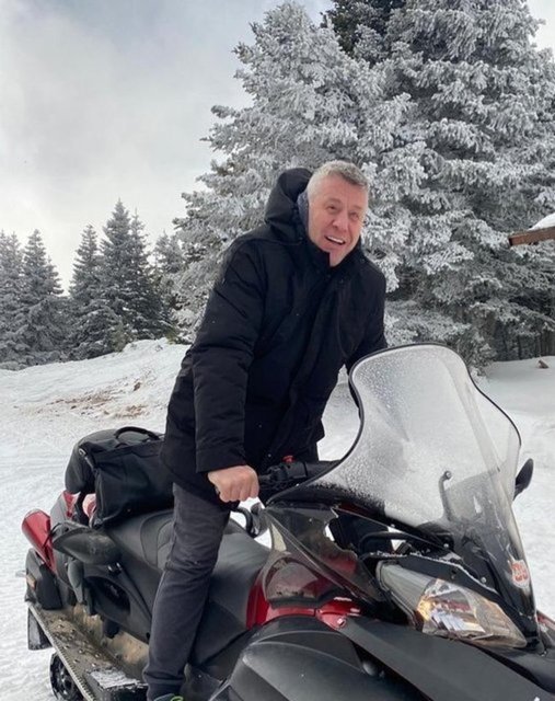 Metin Şentürk, kar motosikleti sürdüğü anları, "Evet! Araba, uçaklar, motosikletten sonra şimdi kar motosikleti sürüyorum." sözleriyle paylaştı.