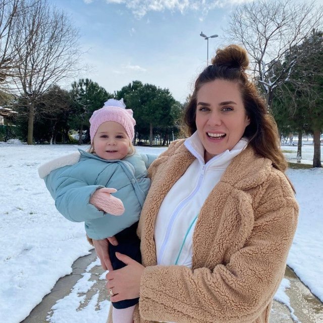 Kızı Vera’yla kar topu oynayan oyuncu Bengi Öztürk, o anları ölümsüzleştirmeyi de ihmal etmedi. Öztürk, "Bekledik bekledik sonunda yağdı. Parmaksız eldivenlerle tutması çok zor olsa da kar oynamayı çok sevdik." dedi.