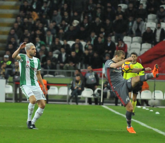 65. dakikada Filipovic-Talisca mücadelesinde Beşiktaşlı oyuncu rakibinden sıyrıldıktan sonra kaleye doğru yönelirken Konyalı oyuncunun eliyle müdahalelerine maruz kalıyor. Burada hakem avantaja dikkat ederek pozisyonu oynattı. Talisca da kurtulup şut çekti ama auta çıktı. Hakemin avantaj kararı doğru ancak avantajdan sonra Filipovic’e ikinci sarıdan kırmızı kartını göstermeliydi.