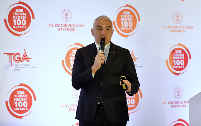 Gelecek hedeflerini rakamlar üzerinden anlatan Kültür ve Turizm Bakanı, "2022'de 46.3 milyar dolar turizm geliri elde edildi, 2023 turizm geliri hedefi ise 56 milyar dolar. Bu konuda 2024'te 68 milyar dolar hedefimiz var, kademeli artış ile 2028'de 100 milyar dolar turizm geliri hedefliyoruz" dedi.