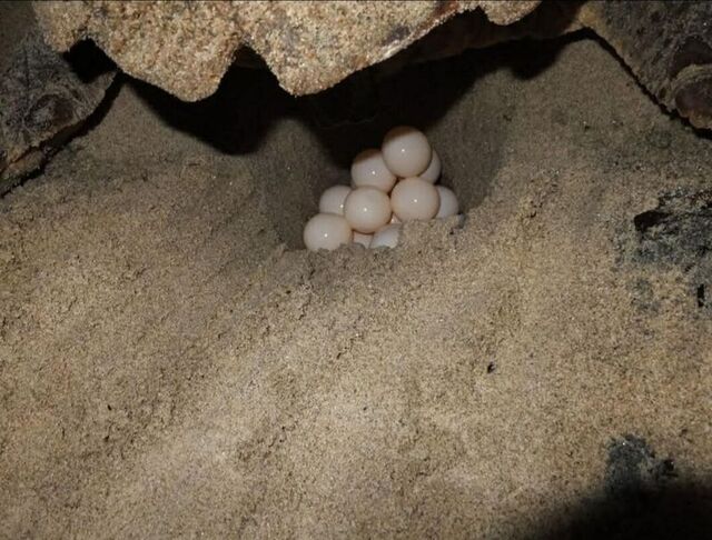 Bu sırada plajda oturan Fatih Bitgen ile Sanem Pazvant, kaplumbağanın yuvanın üzerini örtmesini bekleyip, güvenli bir şekilde denize ulaşmasını sağladı, sonra da durumu EKODOSD'a bildirdi.