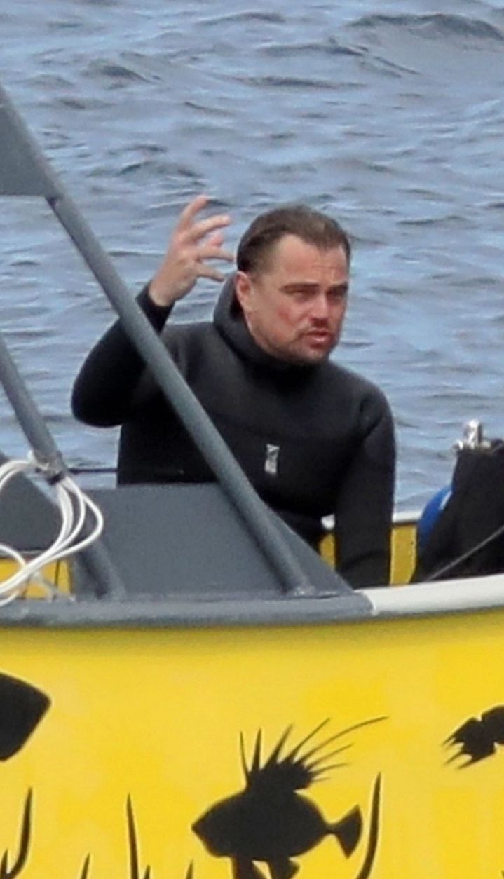 Dalgıç kıyafetlerini giyen DiCaprio, plastik atık toplamak için dalış yaparken ve dalış sonrası ıslak halde sarı botta oturup kameraya konuşurken objektiflere yansıdı.