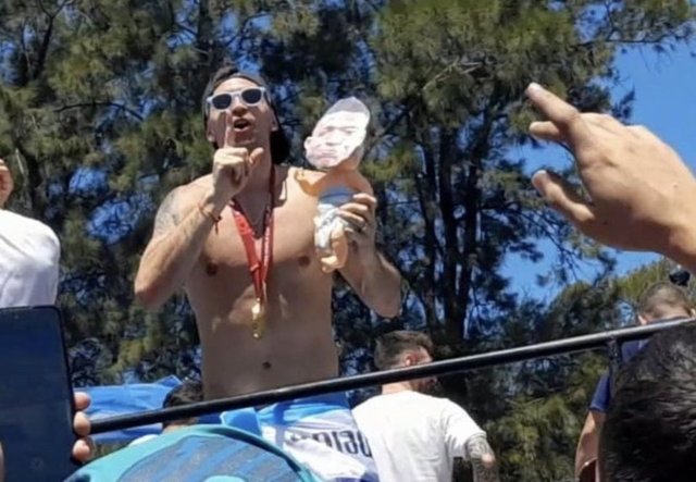 Martinez takım otobüsünde eğlendiği sırada Fransız yıldız Kylian Mbappé'nin fotoğrafının olduğu bir oyuncak bebeği taraftarlara gösterdi. Bu olay sosyal medyada büyük tepki çekti.