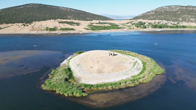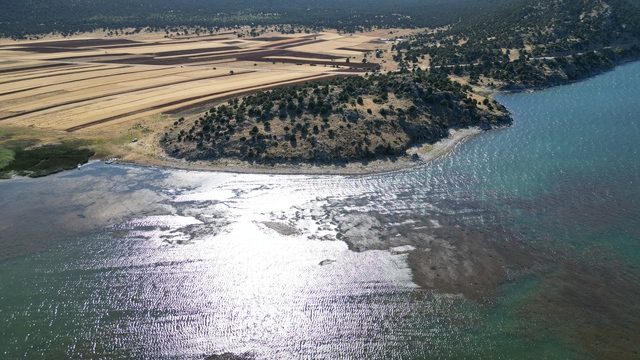 Türkiye'nin yerleşim yeri bulunan tek göl adası olma özelliği taşıyan Isparta'nın Şarkikaraağaç ilçesindeki Mada Adası, havadan görüntülendi. Geçimlerini balıkçılık ve hayvancılık ile sağlayan Mada Adası sakinleri, karaya ulaşımını kayıklarla yapıyor