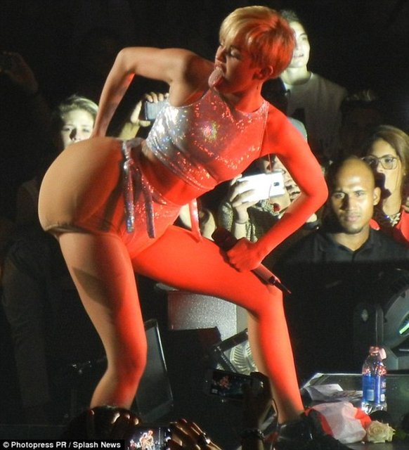 ABD'li şarkıcı Miley Cyrus, Meksika konserinde twerk (kalçayı aşırı biçimde ileri geri sallayarak dans etmek) yapmıştı.