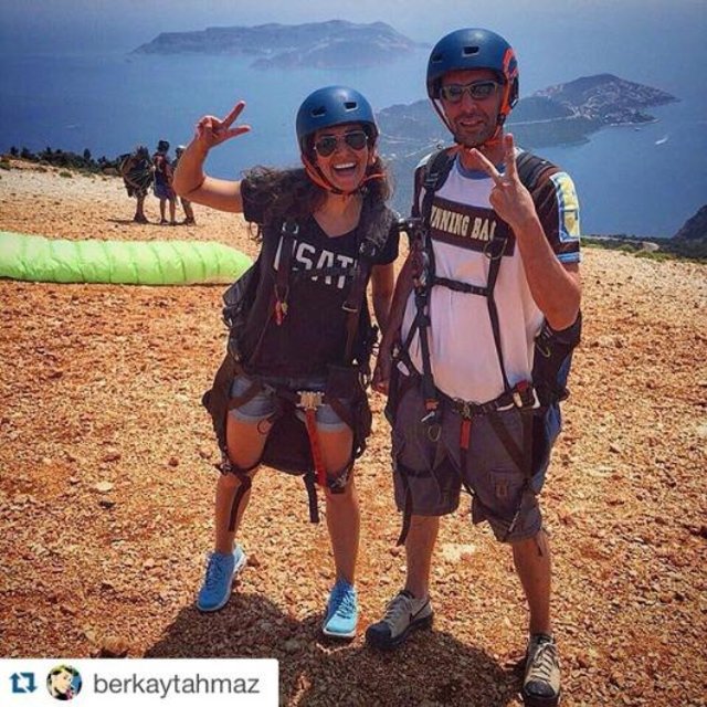 Tahmaz ile Kaş'ta tatil yapan, Özge Borak el ele çekilen fotoğraflarını "Atom karıncalar... Uçtu, uçtu kuş uçtu" notuyla instagram sayfasında paylaştı.