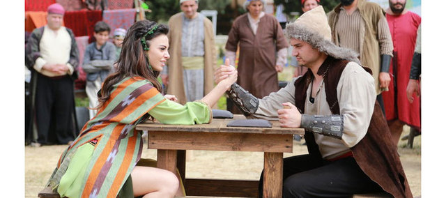 Tuvana Türkay... Güzelliğini bu kez ‘Bizans Oyunları’nda arzı endam eyleyecek. Hakkında ‘İnsani olmayan güzelliğe sahip’ yorumlarının yapıldığı o güzelliğini özellikle şelalede yıkanma sahnesiyle gözler önüne serecek sermesine ama canlandırdığı ‘Ayçörek’ aynı zamanda düşmanlarına aman vermeyen bir kadın cengaver. Atlıyor, zıplıyor, kılıç kullanıyor.