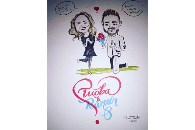Kendilerini karikatür olarak çizdiren çift, daha sonra Rüzgar Erkoçlar tarafından hazırlanan mekana gittiler.