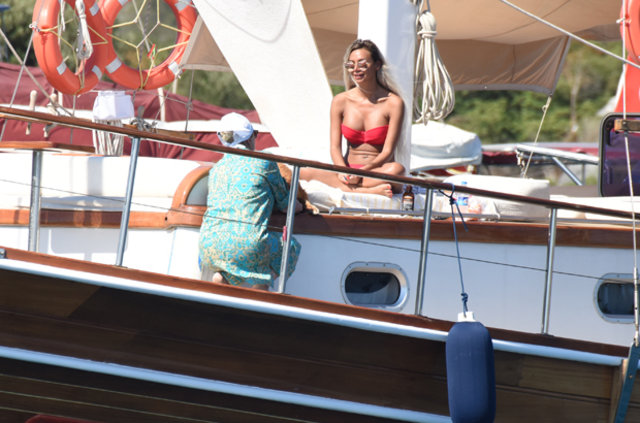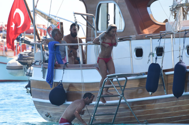 Bir ara Ersoy’un köpeği Şanslı’yı da yüzdüren ünlü oryantal, düzgün fiziğiyle göz doldurdu.