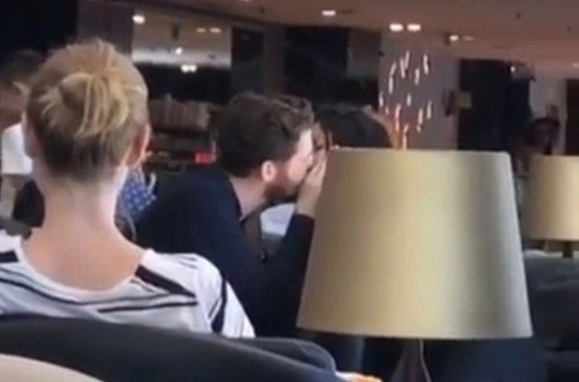 Atatürk Havalimanı'nda buluşan çiftin dudak dudağa öpüştüğü video kısa sürede en çok konuşulanlar arasına girdi.