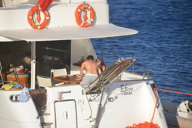 İkili önceki gün de deniz ve güneşin tadını çıkarmak için Aya Yorgi Koyu'ndaki Sole Mare Beach'teydi.