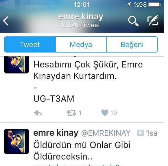 Daha sonra yeni bir Twitter hesabı açan Emre Kınay gerçek hesabının 'Emrekkinay' olduğunu takipçilerine duyurdu.