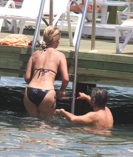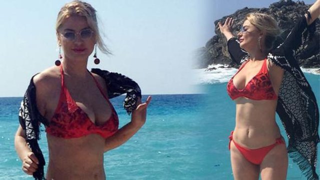 Otelin iskelesinde deniz ve güneşin keyfini çıkaran güzel şarkıcı, düzgün fiziğiyle dikkat çekti.