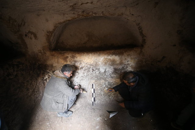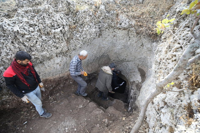 Kazı Başkanı Abdulgani Tarkan, alandaki güney ve kuzey yamaçlarda bulunan kaya mezarlarda çalışma yürüttüklerini söyledi.