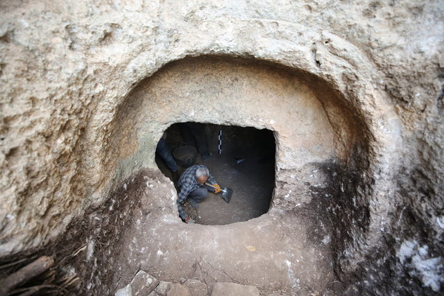 Kaya mezarın birinde yapılan incelemede, yaklaşık 10 insana ait kemikler ile hayvan kemiklerine rastlandı.
