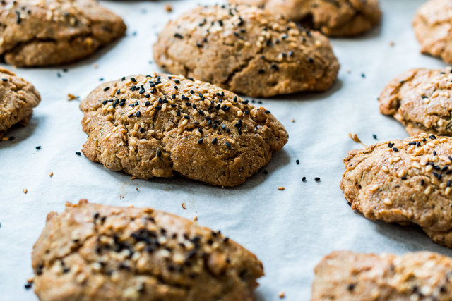 Bir kabın içine malzemelerin tamamını koyup yoğurarak yumuşak bir hamur elde edin. Unu yavaş yavaş ekleyerek hamurun sertliğini (hamur hafif ele yapışacak) ayarlayın. Hamuru iyice yoğurduktan sonra minik bezeler yapıp yağlı kağıt serdiğiniz fırın tepsisine yerleştirin. Fırına sürmeden önce bir süre hamuru dinlendirmenizi öneririz. Üzerlerine yumurta sarısı sürüp, çörek otu, susam ya da ay çekirdeği serpip önceden ısıtılmış 180 derece ısıtılmış fırında yaklaşık 30 dakika üzeri kızarıncaya kadar pişirin. Dilerseniz beyaz un yerine tam buğday unu da tercih edebilirsiniz. Afiyet olsun.