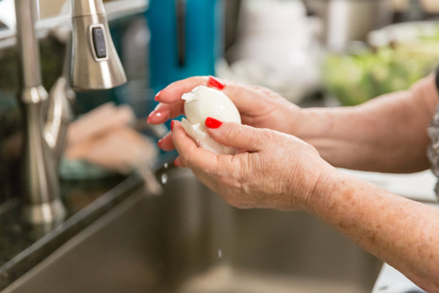 Suyu kendi avantajınıza kullanmanın başka bir yolu var mı? Yumurtaları haşladığınız anda sıcak suyu tavadan alıp yerine soğuk su koyun. Yumurtaların suda dinlenmesi ve soğuması için birkaç dakika verin. Kabaca oda sıcaklığına geldiklerinde, sıvının altında soymaya başlayın. Kabukların beyazlardan kolayca ayrıldığını göreceksiniz.