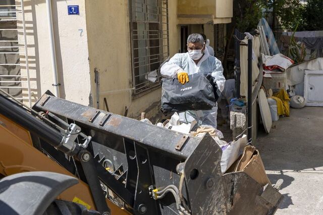 Mersin'in Yenişehir ilçesinde vatandaşların "kötü koku yayıldığı" gerekçesiyle ihbarda bulunduğu evden 10 kamyon çöp çıkarıldı