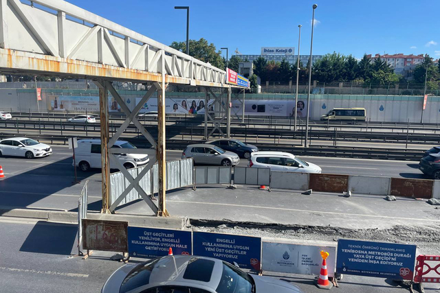 İstanbul Büyükşehir Belediyesince (İBB) Yenibosna Metrobüs İstasyonu yaya üst geçidinde yenileme çalışması başlatıldı.