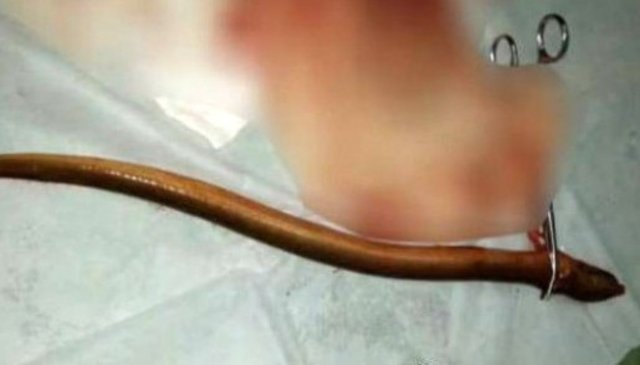 Liu'nun hayatını kaybetmek üzere olduğunu belirten Dr. Zhao Zhirong Guangdong, deniz yılanının ameliyatla çıkarıldığını söyledi.