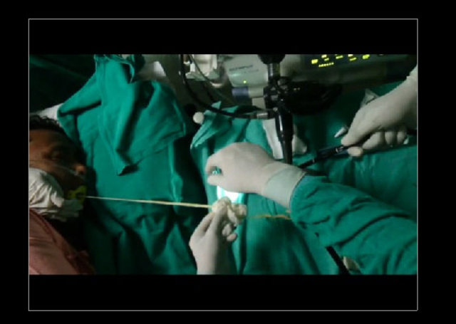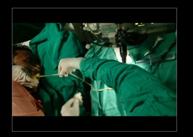 Bir saatten fazla süren operasyonun ardından domuz tenyası adamın ağzından başarılı bir şekilde çıkardılar.