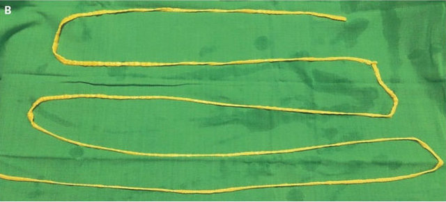 48 yaşındaki bir adamın karnında 183 santimlik domuz tenyası bulundu.