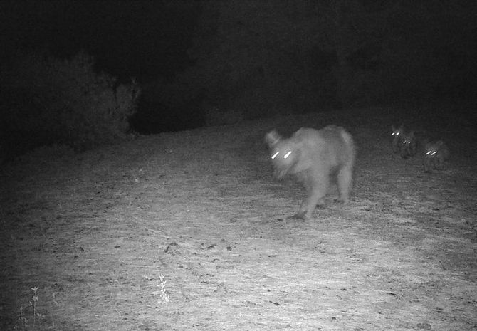 Fotokapanlardan biri boz ayı ailesini görüntüledi.