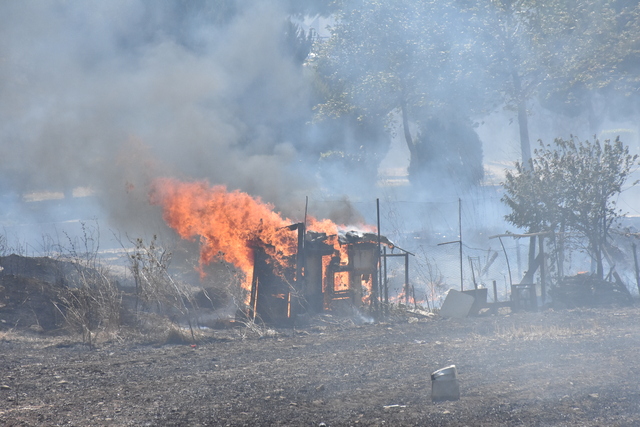 Evlerin yakınındaki sebze ve meyve bahçesindeki kulübelerin, ayçiçeği ekili yaklaşık 10 dekar tarlanın zarar gördüğü yangını 1 saatte kontrol altına alan ekiplerin bölgedeki soğutma çalışmasını sürdürüyor.