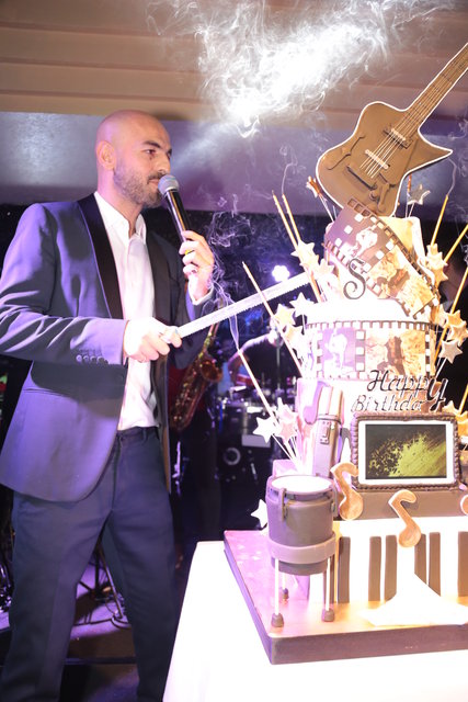 Soner Sarıkabadayı'nın müzik notalarıyla süslü pastası beş katlıydı.
