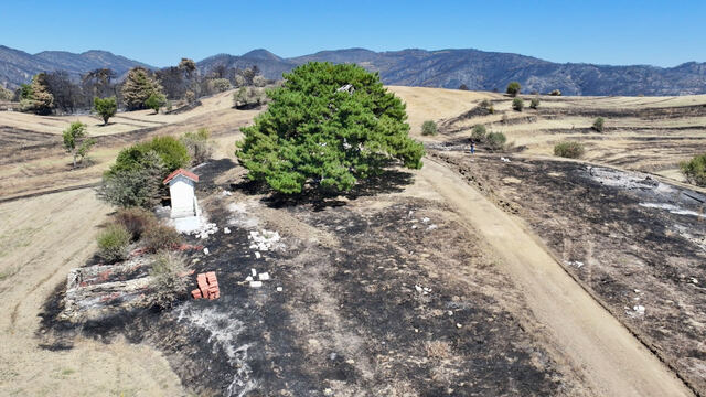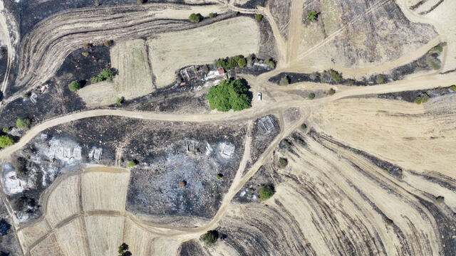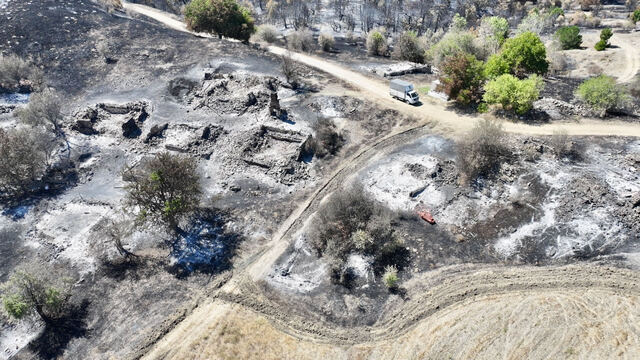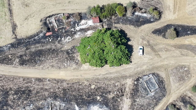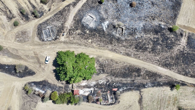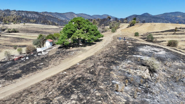 Köyün 30 yıl önce boşaltılan Köper Mahallesi'nde atıl evler ile tarım arazilerinin zarar gördüğü yangın, 300 yıllık olduğu değerlendirilen ve etrafı traktörlerle sürülen çam ağacını etkilemedi.