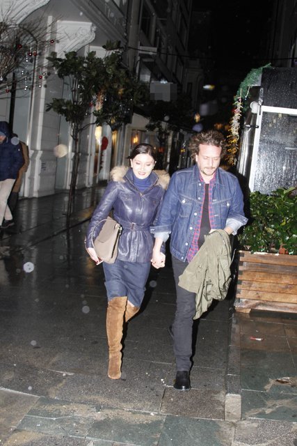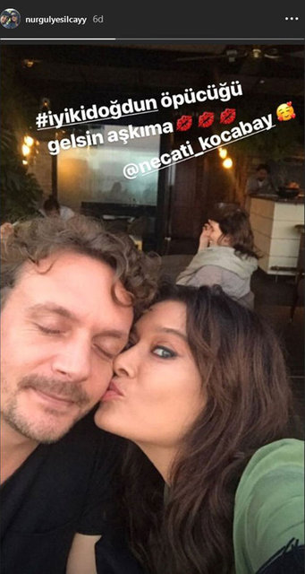 Oyuncu Nurgül Yeşilçay, sevgilisi Necati Kocabay ile birlikte bir restoranda görüntülendi. Başbaşa akşam yemeği yiyen sevgililer, çıkışta objektiflere mutluluk pozu verdi