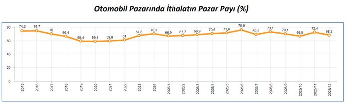 2025 yılı ocak-aralık döneminde otomobil satışlarındaki yerli araç payı yüzde 30, hafif ticari araç pazarında yerli araç payı ise yüzde 22 olarak gerçekleşti.
