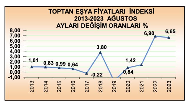 ➔Toptan eşya fiyatları artışı ise tüketici fiyatlarının altında kalmasına karşılık yüzde 6.65 oldu. Ağustos farkı ise toptan eşya fiyatlarının temmuzdaki yüzde 4.54 rakamının üstüne çıkmasında.