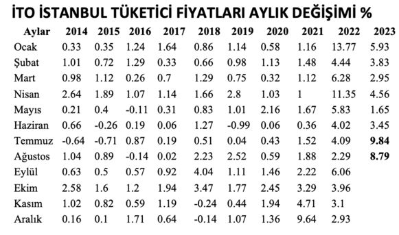 ➔Geçen ay olduğu gibi enflasyonu, İstanbul enflasyonu üzerinden İstanbul Ticaret Odası’nın (İTO) açıkladığı rakamlarla analiz ediyoruz. Hem TÜİK’in rakamlarının çok yakın çıkmaya başlamasından hem de iki gün erken açıklanması bizi buna itiyor.