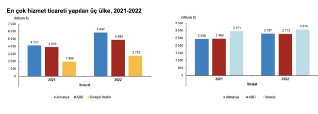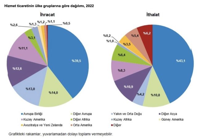 ➔2022 yılı hizmet ihracatı rakamları da yeni yayımlandı. Burada turizmdeki kadar olmasa da belli bir fazla veriyoruz.