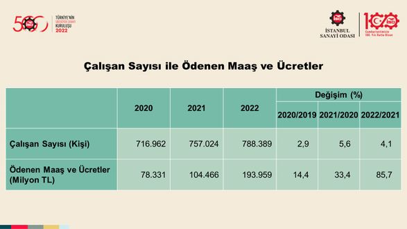 ➔Yatırım üretim, satış, ihracat derken geçen yıl 500 Büyük Sanayi Kuruluşu’nun istihdamı yüzde 4.1 büyüdü. Nüfus artışının üzerinde bir oran ve bu nedenle 2022’de işsizlik oranı düştü.