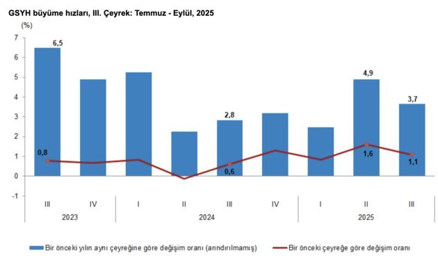 Ekonomi yönetiminin uzun süredir vurguladığı "dengelenme" ve "kaliteli büyüme" söylemlerinin ete kemiğe büründüğü bir çeyreği geride bıraktık. TÜİK’in açıkladığı 2025 3. çeyrek verileri ile GSYH rakamı ilk kez 1.5 trilyon dolar eşiğini geçerek 1 trilyon 538 milyar dolara ulaştı.