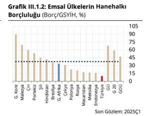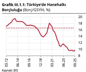 ➔ Bunun GSYH içindeki payı yüzde 9,7 ile düşük düzeyde. Bu açıdan Türkiye düşük hanehalkı borçluluğuna sahip ekonomilerden biri.