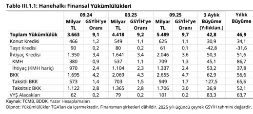 ➔ İlk tablo olan finansal yükümlülükler yani borçlar, vatandaşın nakit akışındaki sıkışıklığın en somut kanıtı.