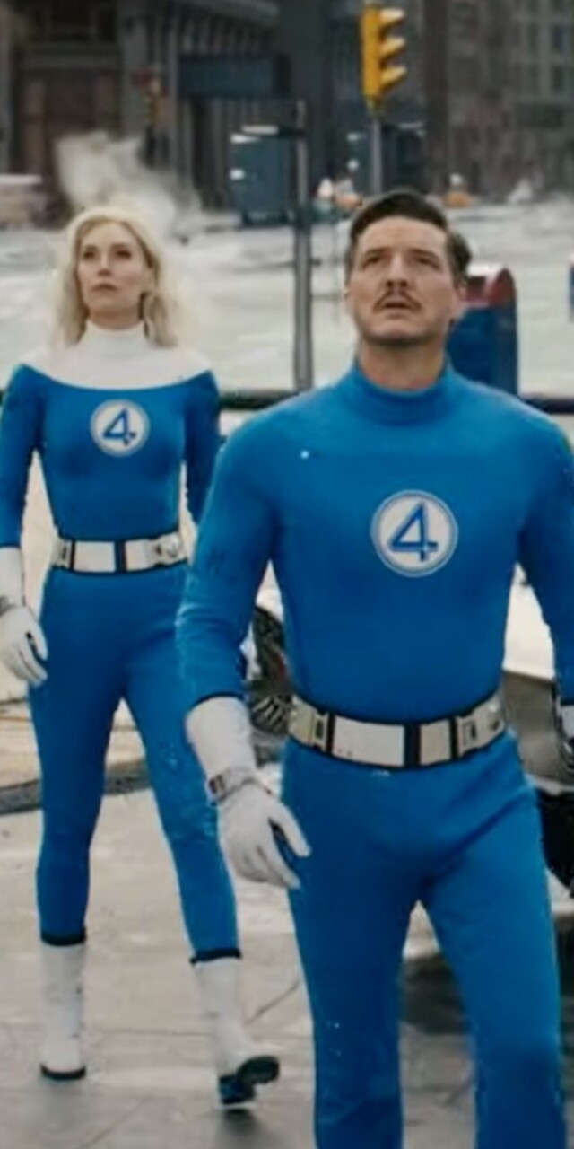 Yönetmen Matt Shakman, geçmiş ve nostalji duygusuyla uzay operası estetiğini birleştiriyor. Retro futuristik dediğimiz tarzı, prodüksiyon tasarımının ruhu haline getiriyor. Filmin tanıtımında çok önemli bir öğe olan fragmanın da geçmişe özlem hissi üzerine kurulduğunu unutmamak gerek. Reed Richards’ın asistanı H.E.R.B.I.E. (Matthew Wood), analog bantları ve tasarımıyla eski usul bir robot olarak retro futuristik tarzın filmdeki en iyi örneklerinden biri. Söz konusu yaklaşım, naif aile filmi konseptiyle birleştiğinde, ortaya gerçekten orijinal bir iş çıkıyor. Geçmişteki uyarlamalardan radikal bir kopuşu, öze dönüş konseptini en baştan önümüze süren mavi beyaz üniformalar, bence filmin en iyi görsel fikirlerinden biri. 1961’de yayınlanan ilk “Fantastic Four” macerasındaki üniformalarda da aynı mavi vardır ama siyah çizgiler bu kez beyaza dönüşüyor.