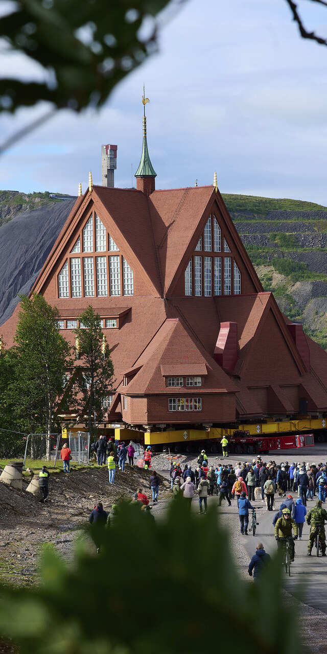 Toprak altında cevher çıkaranlar, bir süre sonra kendi kurdukları şehrin altını oymaya başladılar. Şehir sallandı, tehlike baş gösterdi. O halde şehri başka bir yere taşımalı… Kuşkusuz kiliseyi de… Kiliseyi beş kilometre öteye taşımak için tam sekiz sene boyunca planlama yaptılar. 500 milyon kron, yani 45 milyon Euro harcadılar. Sonunda 40 metre genişliğinde, 34 metre yüksekliğinde ve 672 ton ağırlığındaki kilise yerden kaldırıldı ve 28 akslı, 40 metre genişliğinde, 800 tekerlekli bir vagonun üzerine yerleştirildi. Kiliseyi beş kilometre öteye taşımak iki gün sürdü, iki gün boyunca devlet televizyonu olup bitenleri canlı yayınlayarak memleketin gündemini belirledi.