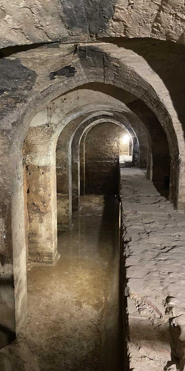 Sondaj yapılıp zemin belirlendikten sonra kazıya kademe kademe devam edildi, nihayet tuğla döşenmiş zemine ulaşıldı ve ortaya burada bazı fotoğraflarını yayınladığım görenleri şaşırtan yapı çıktı: Niçin inşa edildiği şimdilik bilinmeyen, yapımından iki-üç asır sonra sarnıca çevrildiği anlaşılan ve üzerine yüzyıllar boyunca başka binaların inşa edildiği bir mekân...